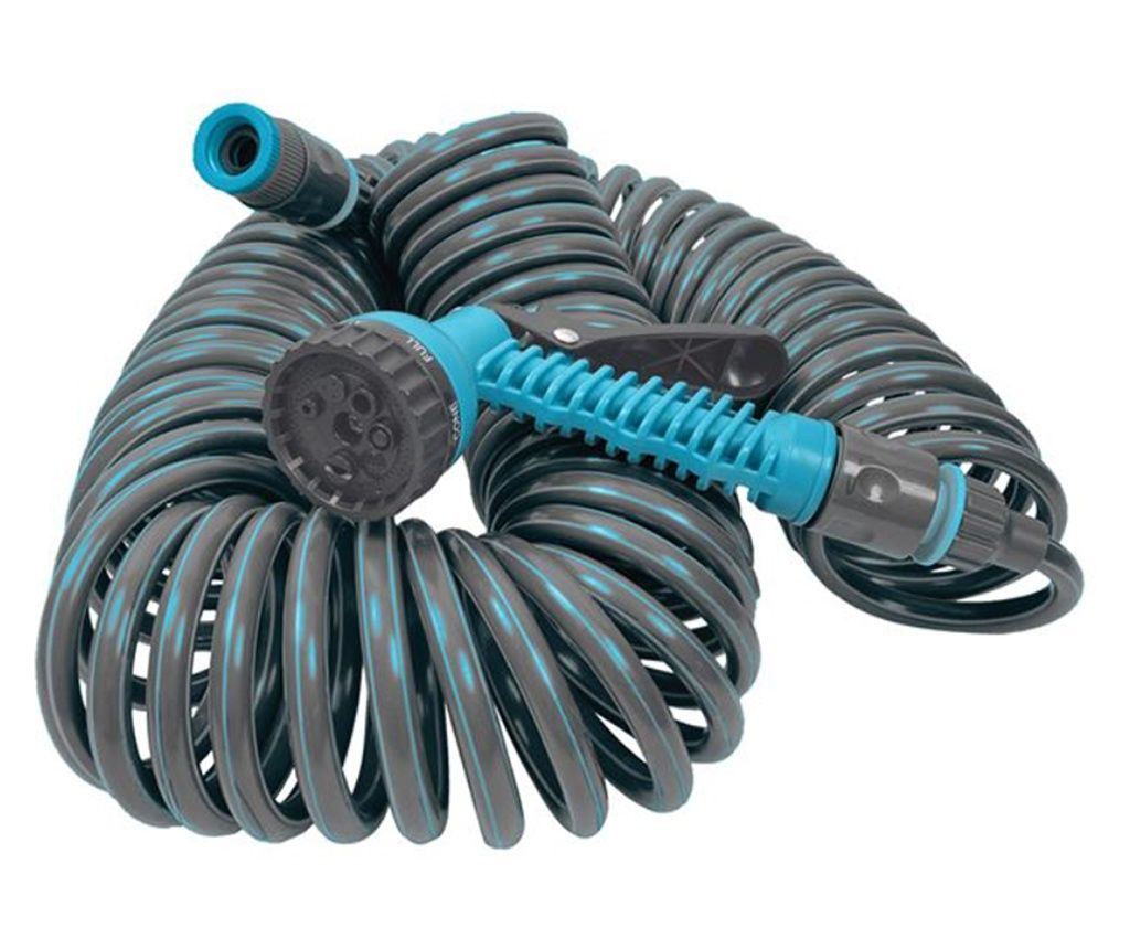 Маркуч за поливане Green Garden, 7 функции, 4 аксесоара, Пистолет, Спираловиден, 20 м, Черен/Син