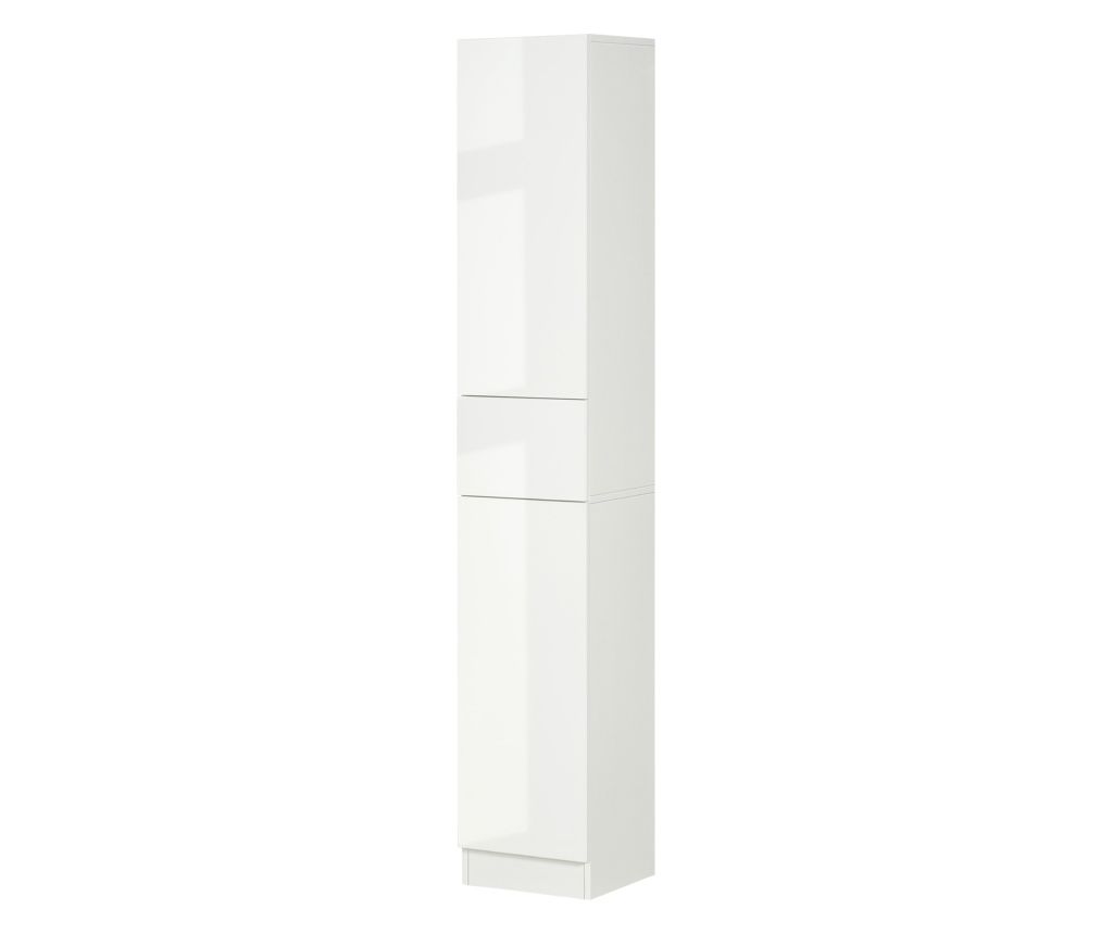 Шкаф за баня с регулируем рафт, 2 затворени рафта и чекмедже, ПДЧ и МДФ, 30x28x180 см, Бял