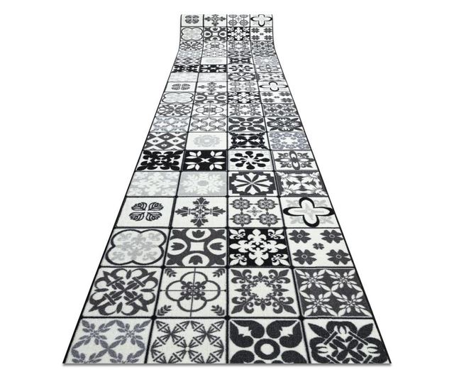 Пътеки противоплъзгаща основа 133cm AZULEJO КРЕПОВА РАБОТА, ЛИЗАБОНОВИ ПЛОЧКИ сиво / черно 133x1400 cm