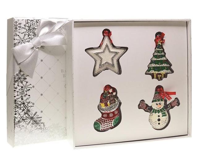 Подаръчен комплект - 4 метални коледни декорации - „Весела Коледа!”