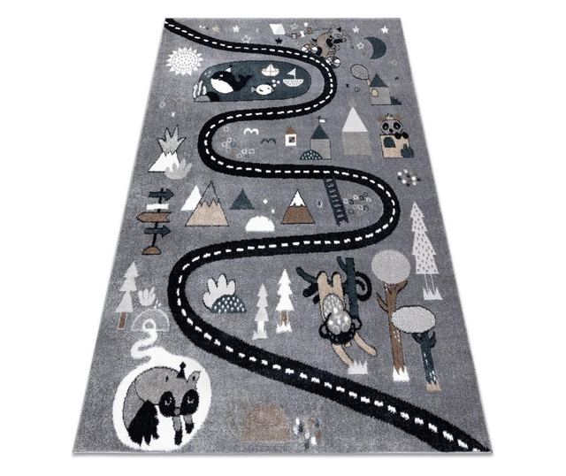 Килим FUN Route за деца, улица, животни сив 280x370 cm 280x370 см