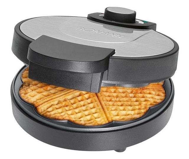 За да приготвите вкусни вафли или вафли, се нуждаете от проста рецепта и устройството Bomann WA 1365 CB, което превръща всичко в приятно изживяване благодарение на незалепващата повърхност за печене от около 18 см. Вафлите се зачервяват равномерно и за кратко време с помощта на равномерно разпределение на топлината от 1000 W и регулиране на покафеняването. Двата индикатора показват кога уредът е готов за употреба и кога вафлите са готови.