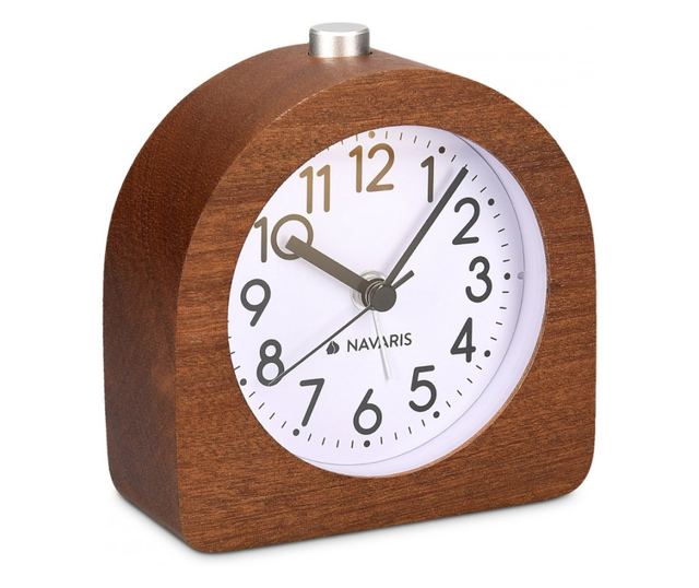 Дървеният будилник от Navaris се вписва перфектно във всяка декорация на стая с минималистичен стил. В същото време има всички необходими функции, от които се нуждае един будилник: дисплей на часовника, отлагане на аларма и светлинен бутон. Функцията за дрямка звъни на всеки 5 минути и се активира от сребърния светлинен бутон.