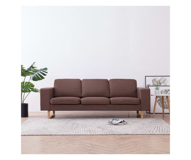 Диван с 3 места, кафяв, текстилна материя
