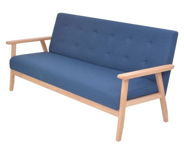 Комплектът дивани е тапициран с мека полиестерна тъкан и е подплатен с пяна за допълнителен комфорт. С издръжлива дървена рамка, комплектът дивани е стабилен и издръжлив. Също така се сглобява лесно.