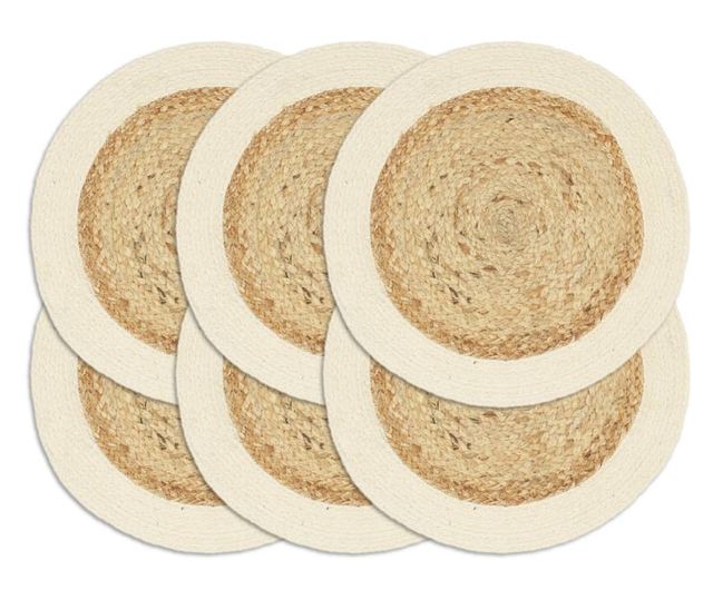 Покривки за маса, 6 бр., естествени, 38 см, юта и памук, кръгли