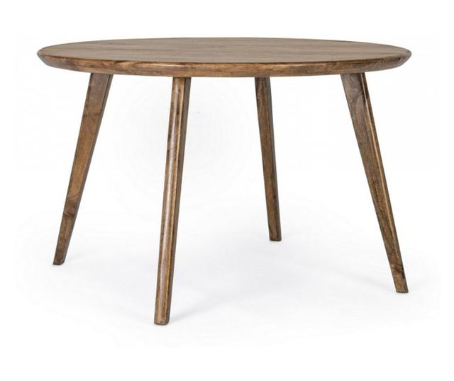 Материал на плота/краката: Дърво от манго, завършено с боя на водна основа. Размери: Диаметър 120 см x Височина 76 см. Краката изискват сглобяване. Цвят: Кафяв. Кръглият плот от мангово дърво придава на масата Sylvester уникален и автентичен характер. Краката, изработени от същото дърво, осигуряват опора и баланс с геометричен дизайн. Масата Sylvester е изискана, с фини линии и естествен вид, който подхожда на почти всеки стил на декорация.