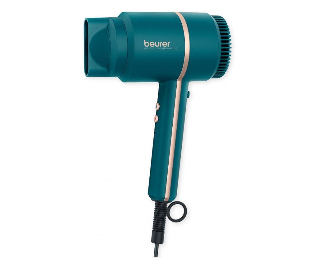 Beurer HC 35 е мощен и компактен сешоар, който ви помага да сушите и да оформяте косата си лекота и удобство. Сешоарът има йонна функция за мека и бляскава коса, както и 3 нива на нагряване и сила на работа. Освен това сешоарът разполага с функция за студен въздух. Този сешоар има тънка и компактна дюза, както и удобно ухо за закачане.
