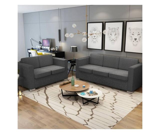 Комплект дивани, мека мебел, от две части, тъмно сиво