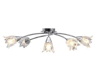 Тази лампа лесно може да се монтира на всеки таван посредством здравата ѝ метална основа. Петте преплетени хромирани стоманени тръби и абажурите от прозрачно стъкло във вид на лале допълват елегантния ѝ вид. Покритието от сатен хром придава на тази лампа модерен стил, което я прави идеална за всекидневна или спалня във всякакъв стил. Освен това се поддържа и почиства лесно с влажна кърпа.