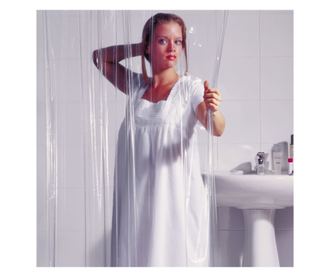 Тази душ завеса е изработена от 100% висококачествен РЕ (полиетилен). Завесата е водоустойчива и изключително практична. Много лесна е за монтиране: Душ завесата е снабдена с капси в горния подсилен подгъв, като може да се закачи лесно и удобно с халки за завеси (не са включени).