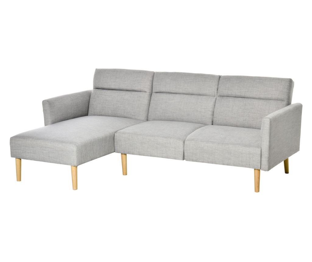 Всеки обича многофункционални мебели, като този ъглов диван от HOMCOM. Идеален е за гледане на телевизия или посрещане на гости в последния момент. Има регулируема облегалка, дебела подплата от пяна и изискан вид, идеален за декориране на вашата всекидневна със стил (и функционалност!). Характеристики: - Облегалка, разделена на 2 независими секции - Можете да регулирате двете облегалки в 3 различни позиции независимо - Трансформира се в легло за минути - Дебела подплата и пружинна основа - Покрит с дишаща и мека на допир полиестерна тъкан с "ленен ефект" - Дървените крака осигуряват стабилност и здравина - Необходим е монтаж Технически данни: - Цвят: Сив - Материал: Полиестерна тъкан с "ленен ефект", Дърво - Общи размери: 207Д x 146Ш x 80В см (диван), 207Д x 107Ш x 60.5В см (легло) - Размери на седалката: 186Д x 53Ш x 40В см - Дебелина на седалката: облегалка: 186Д x 46Ш см - Размери на подлакътника: 78Д x 9Ш x 60.5В см - Товароносимост: 300 кг (диван)