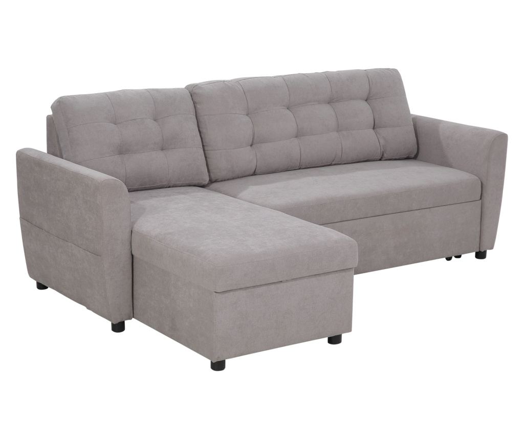 - Сив троен диван, който лесно се превръща в легло чрез издърпване на секцията под седалката;