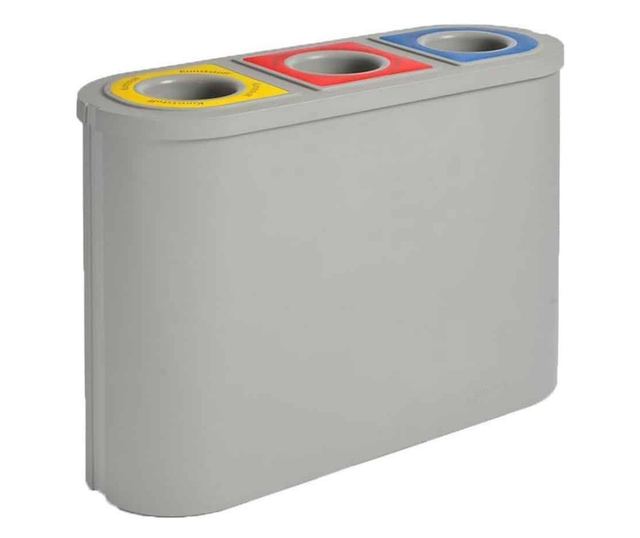 Кошче за селективно събиране Rubbermaid, Triomf, капацитет 3 х 45 литра, 3 отделения за хартия/пластмаса/битови отпадъци, идеалн