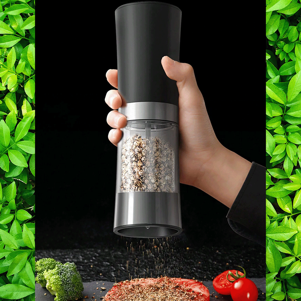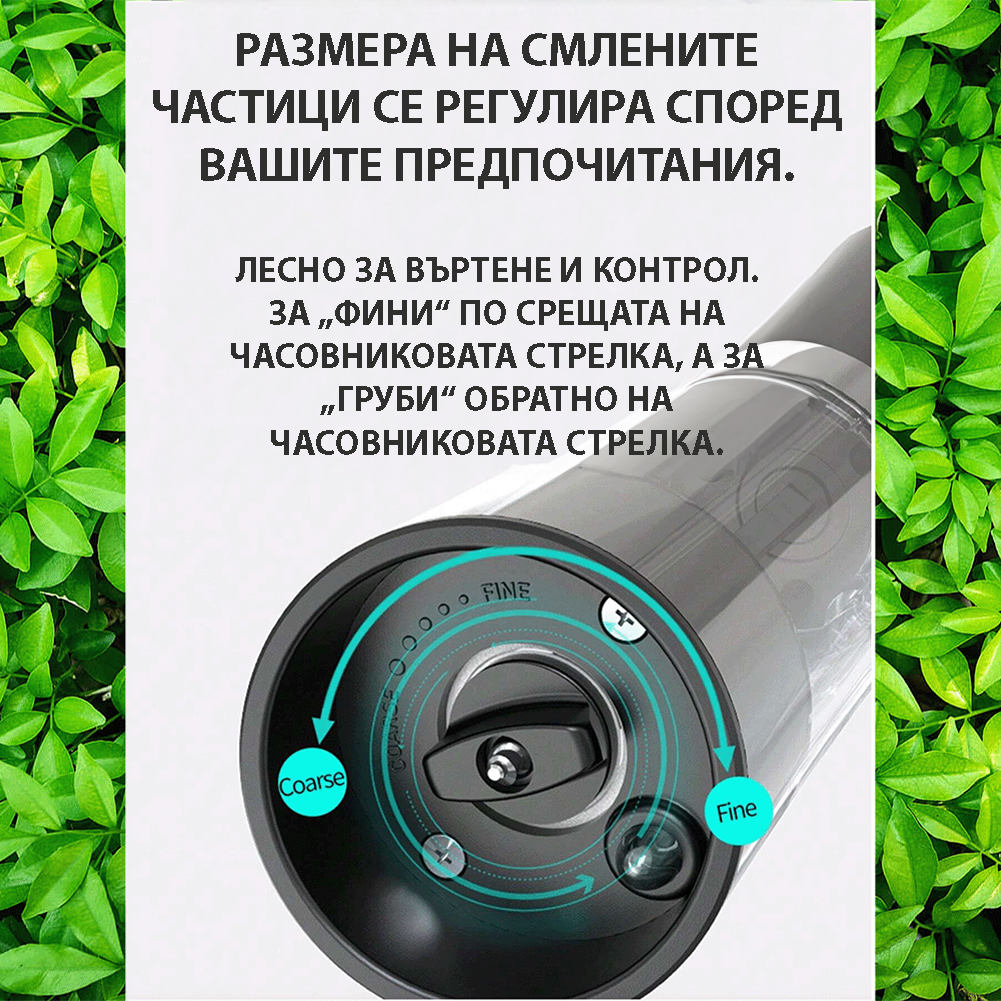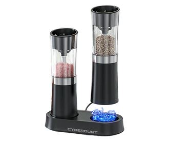 Комплект 2 електрически мелнички CYBERDUST, Едноръчно управление, Гравитационно детектиране, 2 Режима на Фино и Грубо Мелене