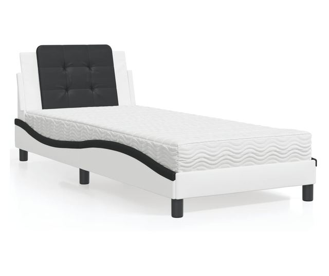 Легло с матрак, бяло и черно, 90x190 см, изкуствена кожа