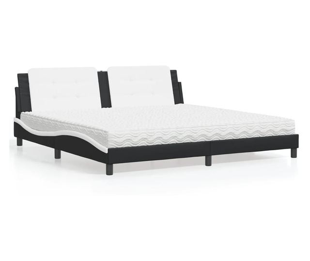 Легло с матрак, черно и бяло, 200x200 см, изкуствена кожа