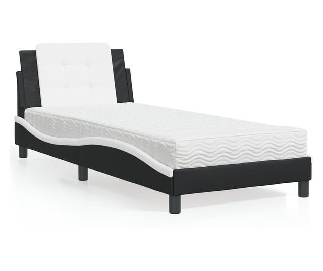 Легло с матрак, черно и бяло, 100x200 см, изкуствена кожа