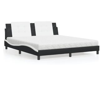 Легло с матрак, бяло и черно, 180x200 см, изкуствена кожа
