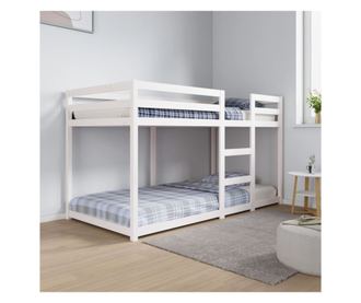 Двуетажно легло, бяло, 90x190 см, борово дърво масив