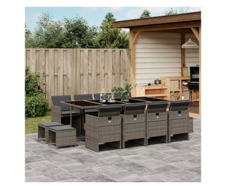 Градински комплект от 13 части с възглавници сив полиратан