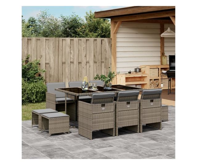 Градински комплект с възглавници 11 части сив полиратан