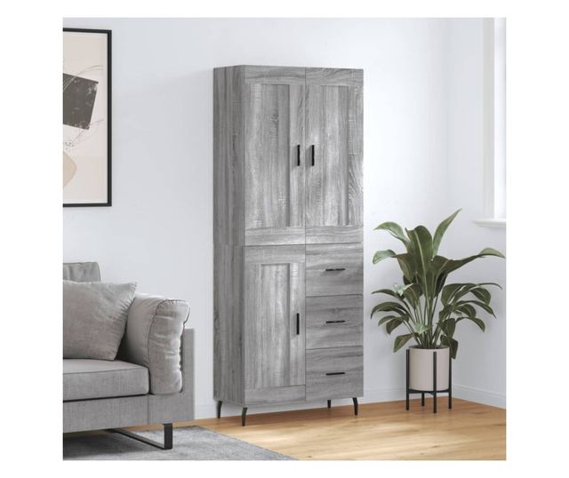 Висок шкаф, сив сонома, 69,5x34x180 см, инженерно дърво