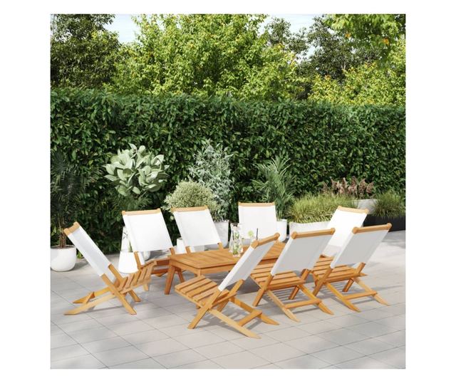 Сгъваеми градински столове, 8 бр, кремави, плат и дърво масив
