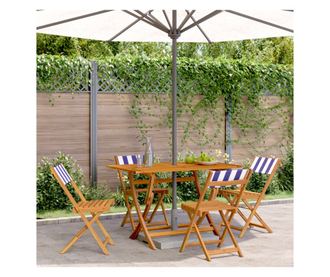 Сгъваеми градински столове 4 бр синьо-бял плат и дърво масив