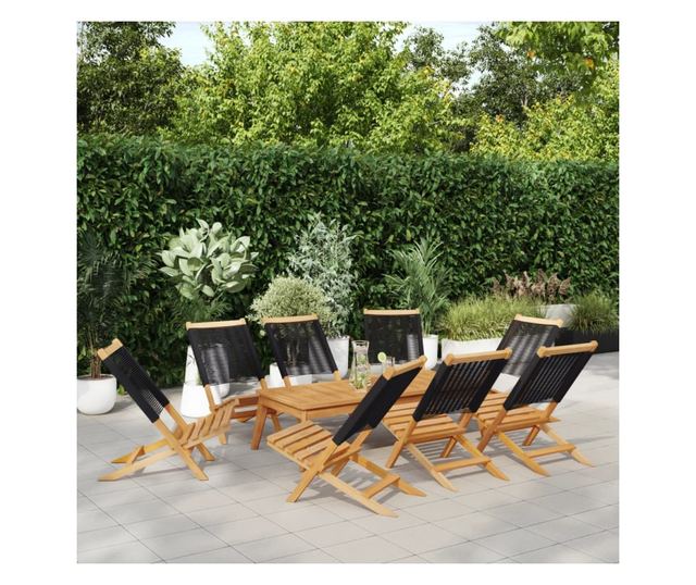 Сгъваеми градински столове, 8 бр, черни, акация масив