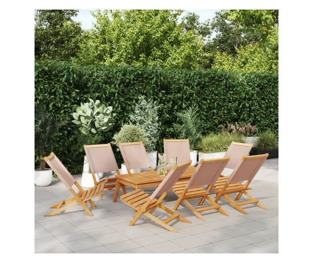 Сгъваеми градински столове, 8 бр, таупе, плат и дърво масив