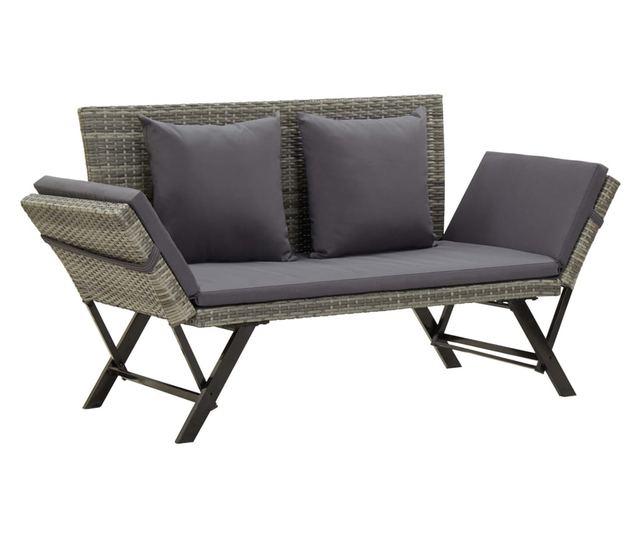 Градинска пейка с възглавници, сива, 176 см, полиратан