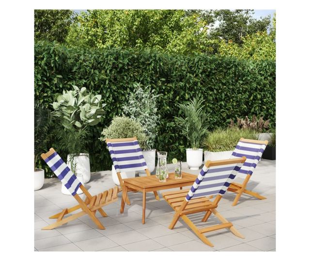 Сгъваеми градински столове 4 бр синьо-бял плат и дърво масив