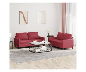 Дивани 2 части с възглавници виненочервен изкуствена кожа