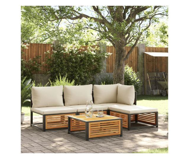 - Здрава и стабилна рамка: Масивното акациево дърво е известно със своята здравина и издръжливост. Неговите разнообразни цветове и уникални зърнести шарки му придават привлекателен вид. С добра стабилност и устойчивост на атмосферни влияния, тя е идеална за изработка на вътрешни и външни мебели. В допълнение, прахово боядисаната стоманена рамка гарантира, че градинската мебел е здрава и стабилна за ежедневна употреба на открито.