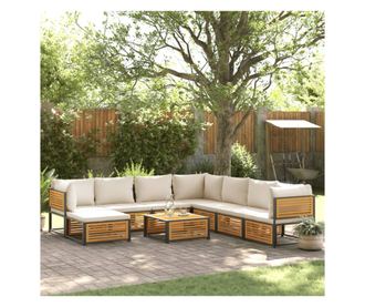 Градински комплект диван с възглавници, 9 части, акация масив