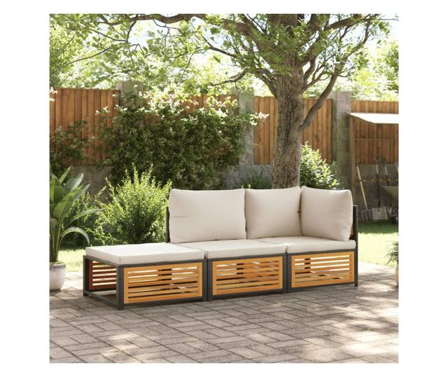 Градински комплект диван с възглавници, 3 части, акация масив
