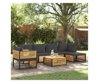 Градински комплект диван, 7 части, с възглавници, акация масив