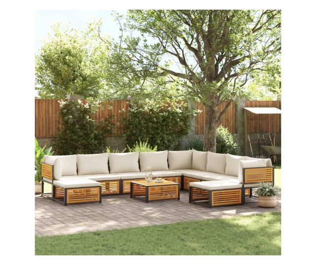 Градински комплект диван 11 части с възглавници акация масив