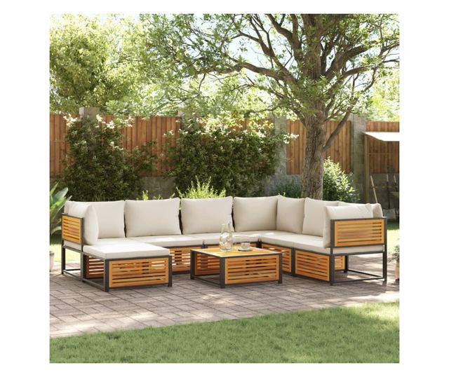 Градински комплект диван с възглавници, 8 части, акация масив