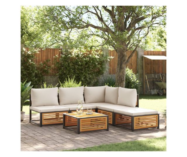 Градински диван с възглавници, 6 части, масив акация