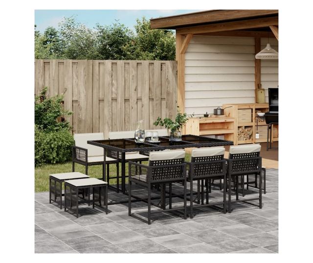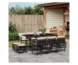 Градински комплект с възглавници 11 части полиратан черен