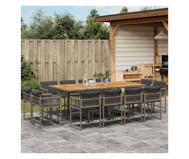 Градински комплект от 13 части с възглавници сив полиратан