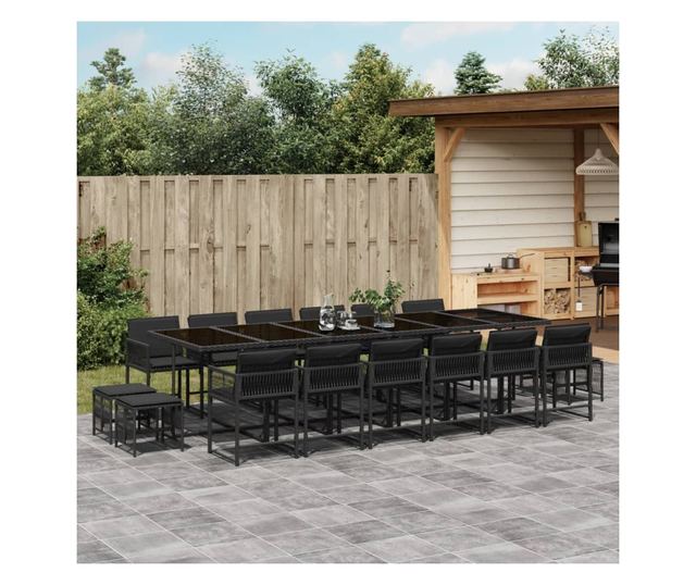 Градински комплект с възглавници 17 части полиратан черен