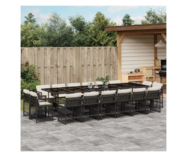 Градински комплект с възглавници 17 части полиратан черен