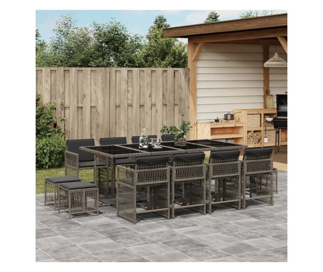 Градински комплект от 13 части с възглавници сив полиратан