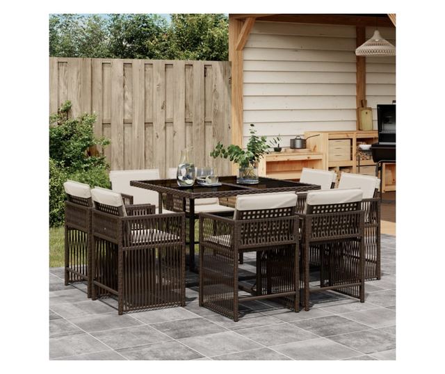 Градински трапезен комплект възглавници 9 части кафяв полиратан