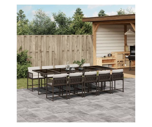 Градински комплект с възглавници 11 части кафяв полиратан
