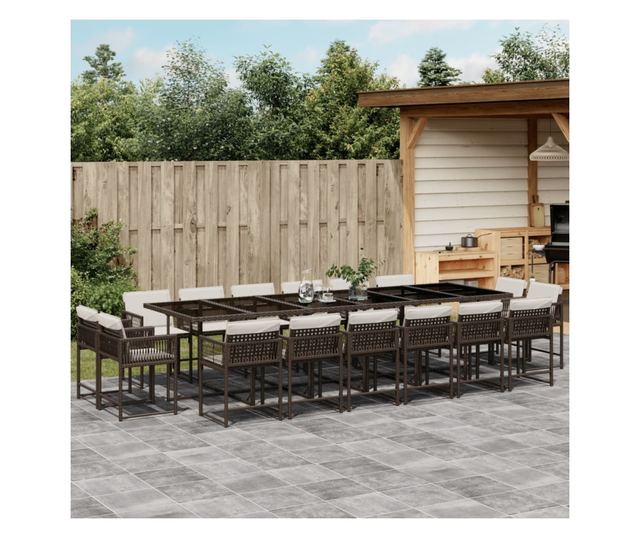 Градински комплект с възглавници 17 части кафяв полиратан