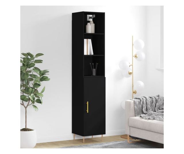 Висок шкаф, черна, 34,5x34x180 см, инженерно дърво